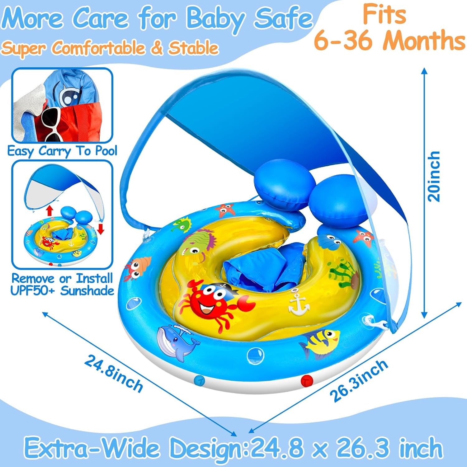 - Flotador seguro, cómodo y entretenido, fabricado en PVC resistente, no tóxico y amigable con la piel del bebé. Diseñado con válvulas de seguridad, cámaras de aire dobles y lados ensanchados para brindar máxima estabilidad. El sistema de doble anillo reduce la posibilidad de vuelco y el asiento suave y amplio mantiene al bebé bien posicionado en todo momento.