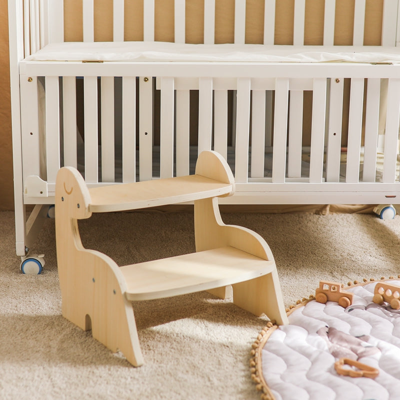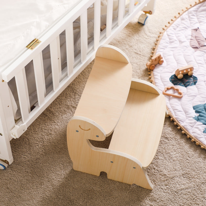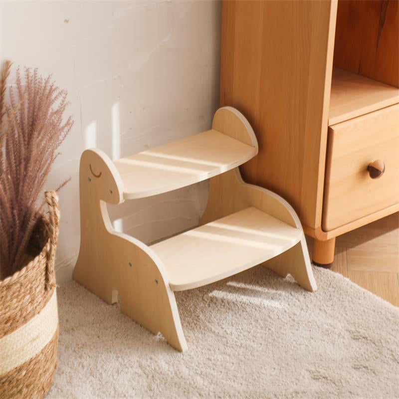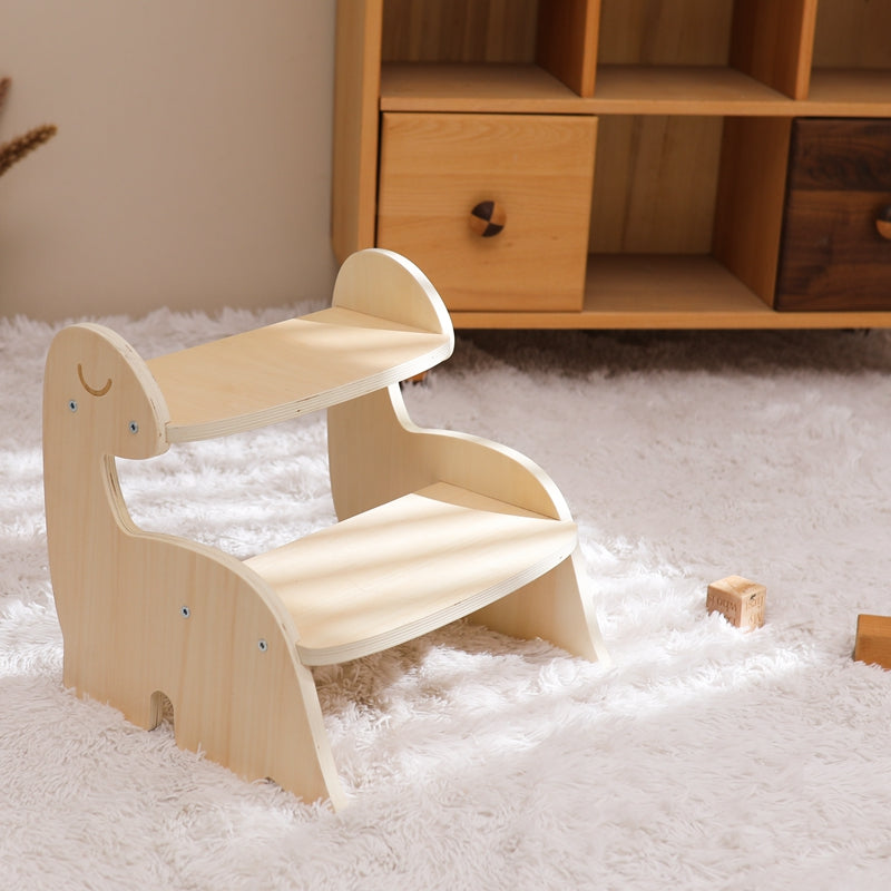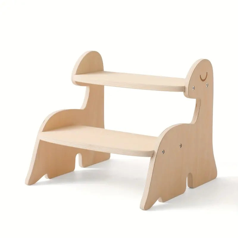 Plataforma de aprendizaje de madera con diseño de dinosaurio, pensada para que los niños puedan alcanzar mesadas, lavamanos o zonas de juego con seguridad. Resistente, estable y de fácil armado, acompaña al niño en sus actividades diarias fomentando su autonomía.