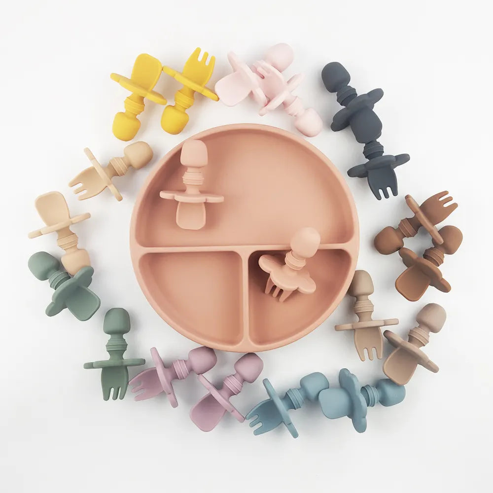 - Incluye 1 tenedor y 1 cuchara de entrenamiento en silicona.