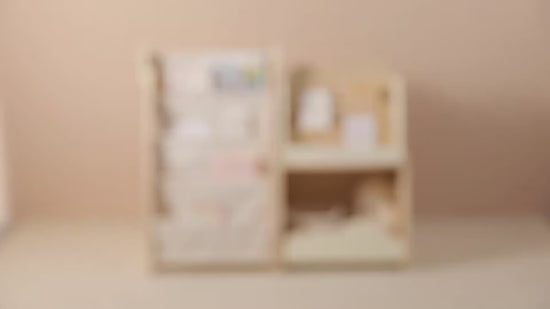 Incluye 1 mesa de luz y 2 módulos para leer y guardar libros, diseñados para fomentar el juego, la lectura y la organización de manera divertida y accesible para los niños.