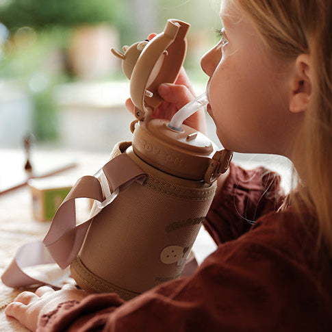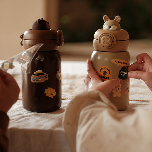 - Diseño divertido y funcional: Incluye una funda diseñada que mantiene el calor por más tiempo, una correa ajustable para colgar y pegotines para que los niños personalicen su termo.