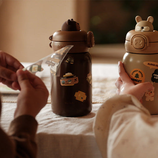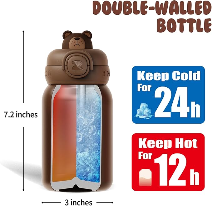 - Diseño divertido y funcional: Incluye una funda diseñada que mantiene el calor por más tiempo, una correa ajustable para colgar y pegotines para que los niños personalicen su termo.